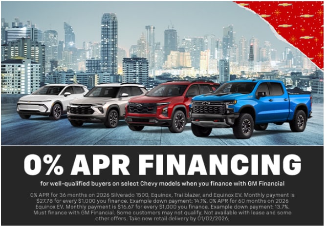 Gear up for the holidays with great offers on a Chevy that's just right for you.