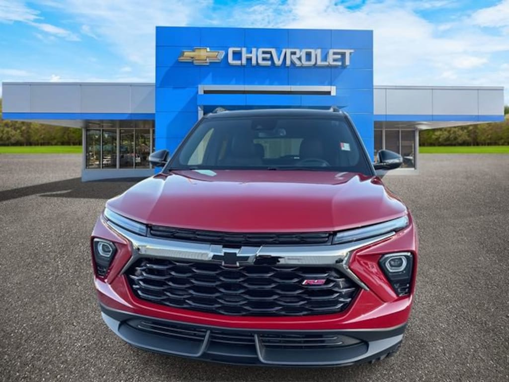 Apex Red 2026 Chevrolet TrailBlazer RS AWD 9-Speed Automatic 1.3L I3 Turbocharged DOHC 12V LEV3-SULEV30 155hp 1 Type-A and 1 Type-C USB Charging-Only Ports, 1 Type-A and 1 Type-C USB Ports, 120-Volt Power Outlet, 2-Way Power Driver Lumbar Seat Adjuster, 3.17 Final Drive Axle Ratio, 4-Way Manual Front Passenger Seat Adjuster, 4-Wheel Disc Brakes, 6 Speakers, 6-Speaker Audio System Feature with Amplifier, 8-Way Power Driver Seat Adjuster, ABS brakes, Adaptive Cruise and Sound Package, Adaptive Cruise Control, Air Conditioning, Alloy wheels, AM/FM radio: SiriusXM, Auto High-beam Headlights, Bose Premium 7-Speaker Audio System Feature, Brake assist, Bumpers: body-color, Cabin Humidity Sensor, Compass, Convenience Package, Delay-off headlights, Driver and Front Passenger Illuminated Vanity Mirrors, Driver Confidence Package, Driver door bin, Driver vanity mirror, Dual front impact airbags, Dual front side impact airbags, Dual-Pane Panoramic Power Sunroof, Electronic Stability Control, Emergency communication system: OnStar and Chevrolet connected services capable, Evotex Seat Trim, Exterior Parking Camera Rear, Flat-Folding Front Passenger Seatback, Front anti-roll bar, Front Bucket Seats, Front Center Armrest, Front License Plate Bracket, Front reading lights, Front wheel independent suspension, Fully automatic headlights, Hands Free Power Programmable Liftgate, Heated door mirrors, Heated Driver and Front Passenger Seats, Heated front seats, Heated steering wheel, Illuminated entry, Inside Rear-View Auto-Dimming Mirror, Knee airbag, Lane Change Alert with Side Blind Zone Alert, Low tire pressure warning, Mosaic Black Metallic Two-Tone Roof, Occupant sensing airbag, Overhead airbag, Overhead console, Panic alarm, Passenger door bin, Passenger vanity mirror, Power door mirrors, Power driver seat, Power steering, Power windows, Preferred Equipment Group 1RS, Radio data system, Radio: AM/FM Stereo Audio System, Rear Cross Traffic Alert, Rear Park Assist, Rear seat center armrest, Rear side impact airbag, Rear window defroster, Rear window wiper, Remote keyless entry, Ride and Handling Suspension, Security system, Single-Zone Automatic Climate Control, SiriusXM Trial Subscription, Speed control, Split folding rear seat, Spoiler, Steering wheel mounted audio controls, Tachometer, Telescoping steering wheel, Tilt steering wheel, Traction control, Trip computer, Variably intermittent wipers, Wheels: 19 High Gloss Black Machined Aluminum, Wireless Apple CarPlay/Android Auto, Wireless Charging.