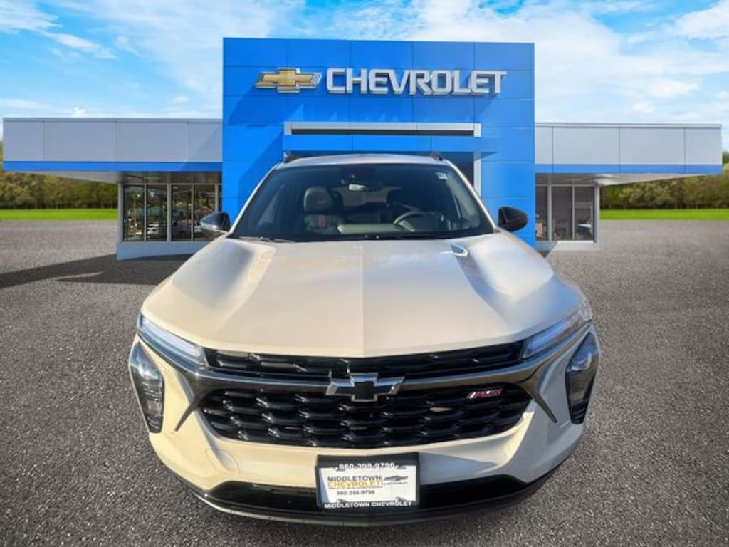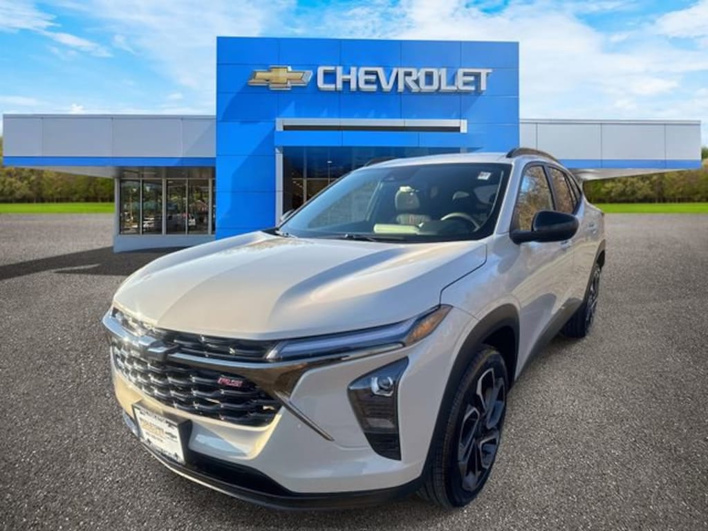 White Sands 2026 Chevrolet Trax 2RS FWD 6-Speed Automatic ECOTEC 1.2L Turbo 2-Way Adjustable Front Head Restraints, 2-Way Power Driver Lumbar Seat Adjuster, 3.50 Final Drive Axle Ratio, 4-Way Manual Front Passenger Seat Adjuster, 4-Wheel Disc Brakes, 6 Speakers, 6-Speaker Audio System Feature, 8-Way Power Driver Seat Adjuster, ABS brakes, Adaptive Cruise Control, Air Conditioning, Alloy wheels, AM/FM radio: SiriusXM, Auto High-beam Headlights, Automatic temperature control, Brake assist, Bumpers: body-color, Compass, Delay-off headlights, Driver Confidence Package, Driver door bin, Driver vanity mirror, Dual front impact airbags, Dual front side impact airbags, Electronic Stability Control, Emergency communication system: OnStar One Essentials, Evotex Seat Trim, Exterior Parking Camera Rear, Front anti-roll bar, Front Bucket Seats, Front Center Armrest, Front reading lights, Front wheel independent suspension, Fully automatic headlights, Heated door mirrors, Heated Driver and Front Passenger Seats, Heated front seats, Heated steering wheel, Illuminated entry, Lane Change Alert with Side Blind Zone Alert, Leather steering wheel, Low tire pressure warning, Occupant sensing airbag, Outside temperature display, Overhead airbag, Overhead console, Panic alarm, Passenger door bin, Passenger vanity mirror, Power door mirrors, Power driver seat, Power steering, Power windows, Premium audio system: Chevrolet Infotainment 3, Radio data system, Radio: AM/FM Stereo Audio System, Rear Cross Traffic Alert, Rear Park Assist, Rear window defroster, Rear window wiper, Remote keyless entry, Security system, SiriusXM Trial Subscription, Speed control, Split folding rear seat, Spoiler, Sport steering wheel, Steering wheel mounted audio controls, Tachometer, Telescoping steering wheel, Tilt steering wheel, Traction control, Trip computer, Variably intermittent wipers, Wheels: 19 Black-Painted Machined Aluminum, Wireless Apple CarPlay/Wireless Android Auto.