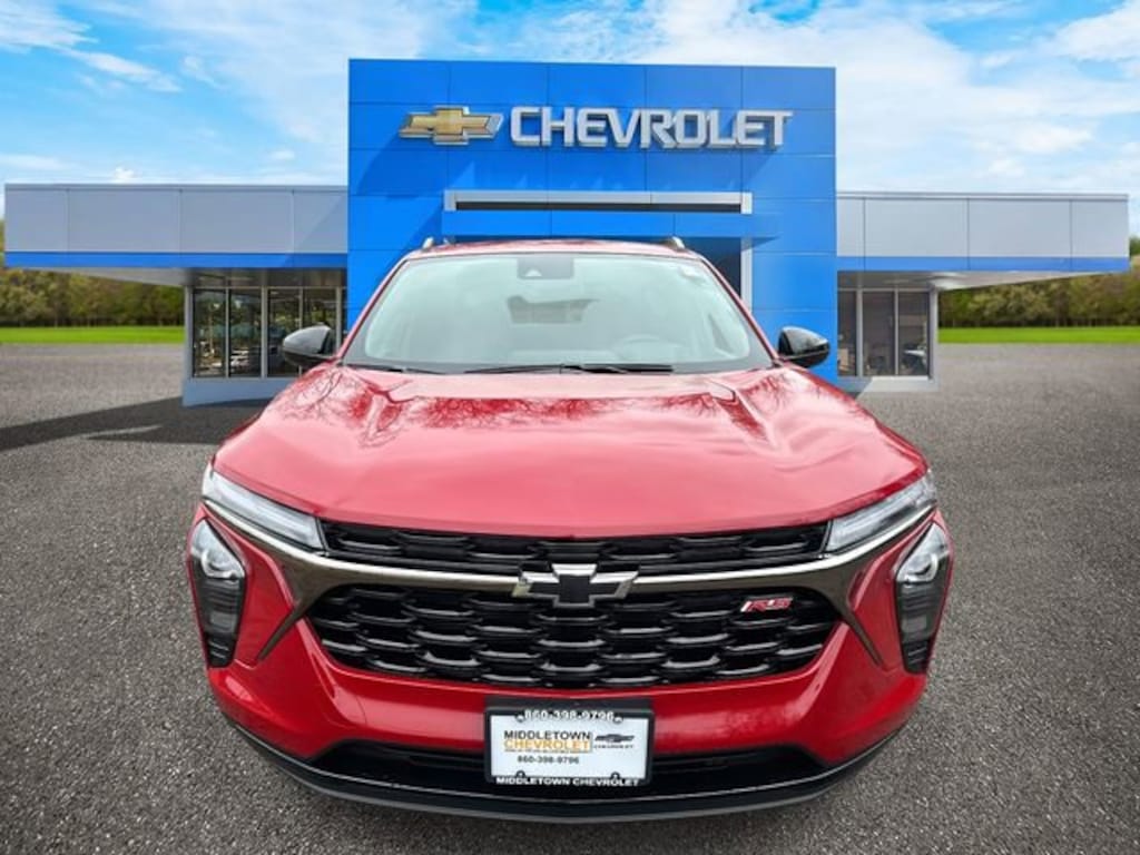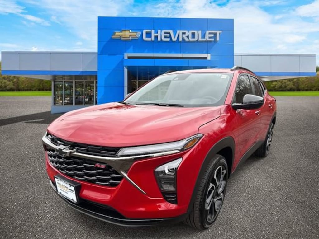 Apex Red 2026 Chevrolet Trax 2RS FWD 6-Speed Automatic ECOTEC 1.2L Turbo 2-Way Adjustable Front Head Restraints, 2-Way Power Driver Lumbar Seat Adjuster, 3.50 Final Drive Axle Ratio, 4-Way Manual Front Passenger Seat Adjuster, 4-Wheel Disc Brakes, 6 Speakers, 6-Speaker Audio System Feature, 8-Way Power Driver Seat Adjuster, ABS brakes, Adaptive Cruise Control, Air Conditioning, Alloy wheels, AM/FM radio: SiriusXM, Auto High-beam Headlights, Automatic temperature control, Brake assist, Bumpers: body-color, Compass, Delay-off headlights, Driver Confidence Package, Driver door bin, Driver vanity mirror, Dual front impact airbags, Dual front side impact airbags, Electronic Stability Control, Emergency communication system: OnStar One Essentials, Evotex Seat Trim, Exterior Parking Camera Rear, Front and Rear Jet Black All-Weather Floor Liners, Front anti-roll bar, Front Bucket Seats, Front Center Armrest, Front reading lights, Front wheel independent suspension, Fully automatic headlights, Heated door mirrors, Heated Driver and Front Passenger Seats, Heated front seats, Heated steering wheel, Illuminated entry, Lane Change Alert with Side Blind Zone Alert, Leather steering wheel, License Plate Front Mounting Package, Low tire pressure warning, Occupant sensing airbag, Outside temperature display, Overhead airbag, Overhead console, Panic alarm, Passenger door bin, Passenger vanity mirror, Power door mirrors, Power driver seat, Power Sliding Glass Sunroof with Manual Shade, Power steering, Power windows, Preferred Equipment Group 2RS, Premium audio system: Chevrolet Infotainment 3, Radio data system, Radio: AM/FM Stereo Audio System, Rear Cross Traffic Alert, Rear Park Assist, Rear window defroster, Rear window wiper, Remote keyless entry, Security system, SiriusXM Trial Subscription, Speed control, Split folding rear seat, Spoiler, Sport steering wheel, Steering wheel mounted audio controls, Sunroof Package, Tachometer, Telescoping steering wheel, Tilt steering wheel, Traction control, Trip computer, Variably intermittent wipers, Wheels: 19 Black-Painted Machined Aluminum, Wireless Apple CarPlay/Wireless Android Auto, Wireless Charging.